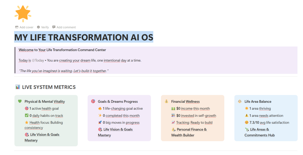 MY LIFE TRANSFORMATION AI OS | Complete Notion Life Management System